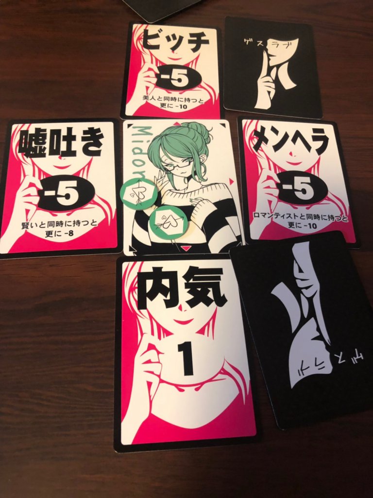 属性カードには点数が付いており、それの合計得点が女の子の点数です。